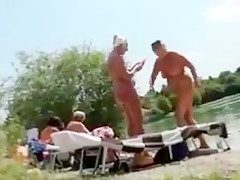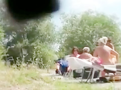 Matures suntanning bare