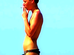 Hotty with plug in the a-hole positions for a lad at a public beach