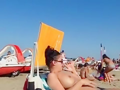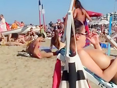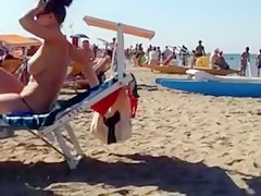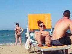 Hotty with plug in the a-hole positions for a lad at a public beach