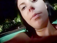 Breana in bitch gives face hole gagging bj in the outdoors