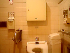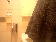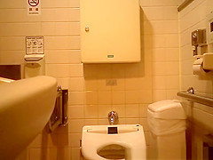 Oriental woman caught in public crapper peeing