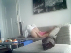 Hidden camera in the living room was directed at the bed where a hawt hotty was enjoying the fact this babe is home alone. This Babe dropped her panties down and rapidly rubbed her vagina. Judging by the arching of her back, that babe gave herself a gorgeous hard agonorgasmos.