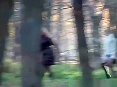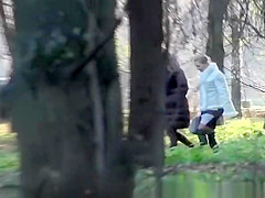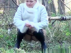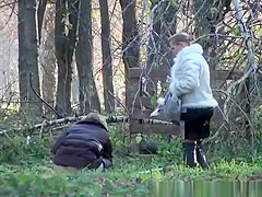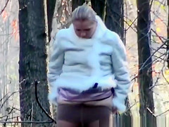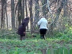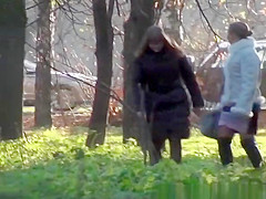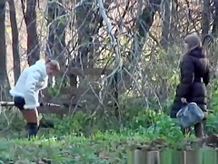 2 honeys take a pee outdoors in public