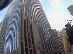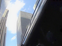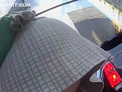 Business lady upskirt shows naked slit