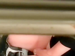 Voyeur peeped a geeky gal in the throne room up from the ventilation ducts and that guy found that this babe got a wild raunchy side as well. That Babe wears such nerdy glasses that no one would have guessed this babe got such a hawt strap betwixt these large a-hole cheeks.