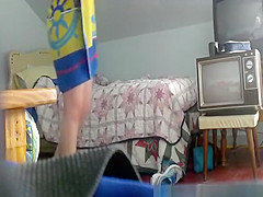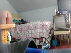 Hidden livecam in cuties bedroom catches her drying her hair and putting skin care lotion in her valuable in nature's garb body previous to dressing purple pants.