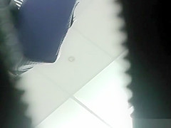 Description: Woman with corpulent booty and short petticoat upskirted by voyeur.
