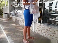 Description: Lengthy hair latin honey in blue spandex shorts has fine arse.
