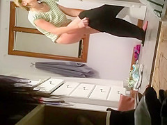 Spy camera catches bust mother i'd like to fuck with bushy muff getting out of bathtub and drying her body, in advance of dressing a t-shirt and darksome panties.
