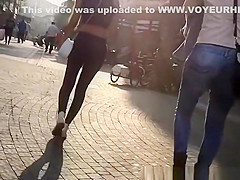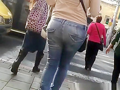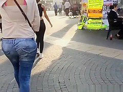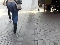 Description: 2 nubiles in taut jeans panties, one with larger arse in blue jeans and other in darksome jeans panties.