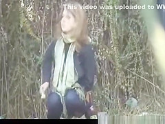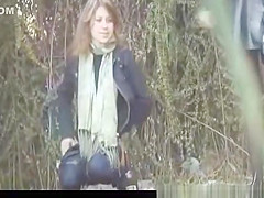 Drunk sweetheart peeing outdoor