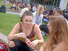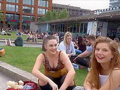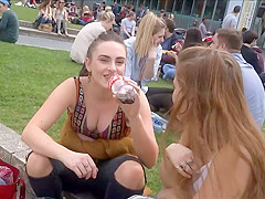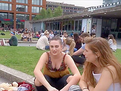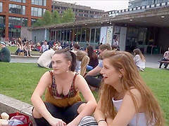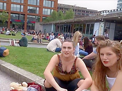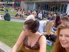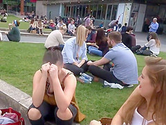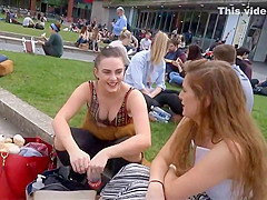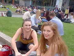 Well, this is smth u don't watch each day. I was secretly filming those 2 honeys at the campus, with peculiar focus on these gracious large meatballs and then the beauties figured me out. They didn't appear to be to mind it so they smiled at me and waved to the camera. It was a bit embarrassing for me, but I'll live.