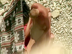 Voyeur on top of cliff films dude fucking her woman doggy style. After the fuck they go to refresh their bodies in the water.