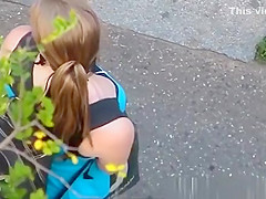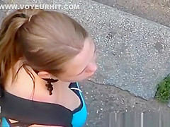 Looking into the neckline of 2 cuties on the street.