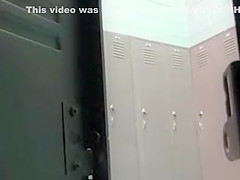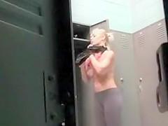 Fitness beauty with fake marangos in locker room