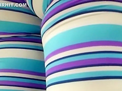 I'm not sure is it these colorful stripes on her constricted leggings or is it her large arse itself that made me dizzy but smth did the trick and I felt like a drug junkie that wanted to jump inside and dive with my face inside betwixt her hips and buns.