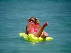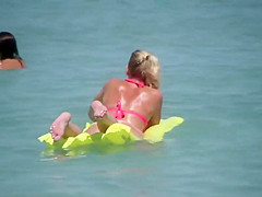 Voyeur zoomed in as much as this guy could on a hawt blond that floated in the sea, on her air mattress. This Babe was chilling in the water with a ally and that babe was clueless that her pale bubbly gazoo is being zoomed in on and inspected in great detail, all the way from the beach.
