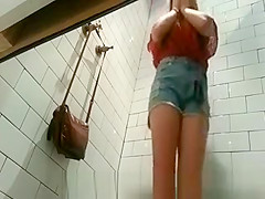 Hawt blond legal age teenager being filmed changing in garments store.