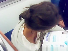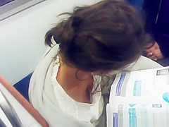 Swarthy sweetheart down blouse whilst that babe read magazine in Paris subway.