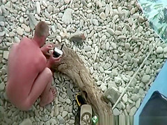 Naked woman plays in the water then goes to shore where stud puts his camcorder in position to film him and ally fucking that nudist bitch.