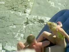 Golden-Haired naked woman has her love tunnel fingered and eaten gives her dude a oral job in the rocky beach.