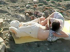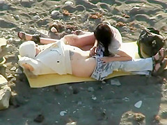 Concupiscent moist cookie of sunbathing beach gal  filmed