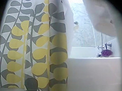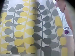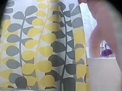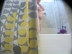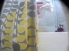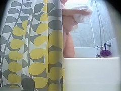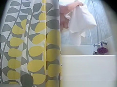 Fat breasty woman caught in baths by hidden camera drying her chunky body.