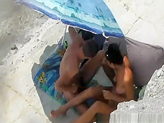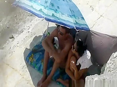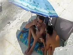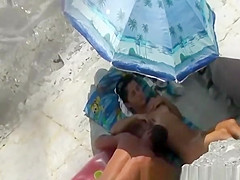 Nudist pair relaxing below the sun umbrella when boy acquires lewd and his honey strokes his schlong hard untill this guy cums. This Babe cleans his mess and one as well as the other smoke a cigar.