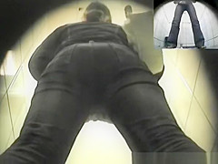Woman with unshaved crotch spied peeing
