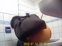 Hidden camera in the restroom has managed to catch a sexy woman with a large wazoo during the time that that babe was taking a urinate in there. This Babe's a hot hotty and it was a a matter of joke thing to watch how far that babe goes into the gazoo crack to wipe off her twat when that babe was done.