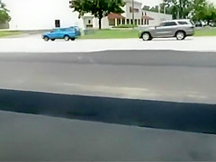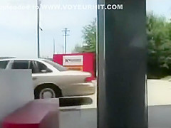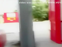Hawt playgirl flashes arse on a gas station