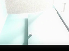 Woman spied in pool cabin taking off her swimsuit and drying her bald snatch and body with blue towel. After drying this babe dresses her clothing.