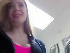 Description: Biggest natural large scones gal films herself in garments store change room trying fresh garments.