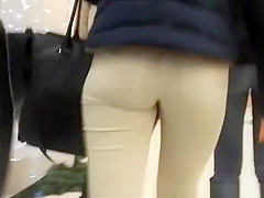 Worthy wazoo in constricted white jeans panties