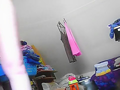 I knew that babe comes in here and looks for pants in the laundry basket so I've set my camera and caught her in act, fully undressed and picking out her underclothes for the day. This Babe overspread her muff with a precious silky garment with a bit of lace decorations, looking hawt as ever.