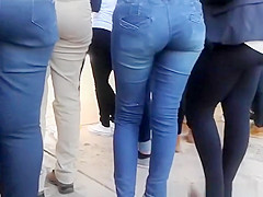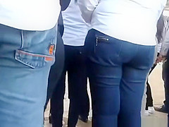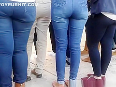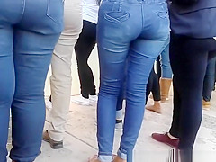 Description: Large gazoo sweetheart and smaller a-hole hottie in taut jeans panties.