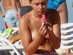Topless playgirl eats an ice jism