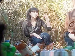 3 hotties caught pissing in a immodest place