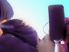 Voyeur secretly tapes beauty love tunnel lips beneath her short petticoat.