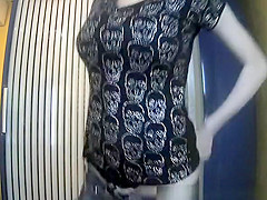Honey with great body and great couple of natural marangos takes off her garments leaving just her strap for tanning session. After tanning that babe dresses her raiment anew.