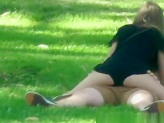 Legal Age Teenager pair spied in public park making out. This Babe receives on top of him and rubs her crotch on him.