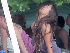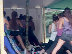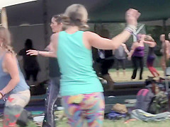 There was this sexy hippie cutie in the yoga group and I had to peep on her during the time that this babe stretches her pretty body. That Babe was fully relaxed and I used camera zoom to check out her hawt booty and supple body, but I even managed to enslave a quick cookie slide when this babe lied back down.