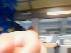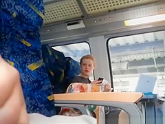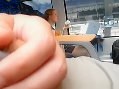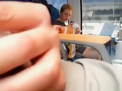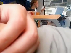 Description: Lad plays with his ramrod in teach during the time that legal age teenager on the other side of carriage eats smth.