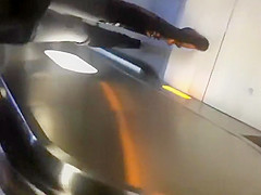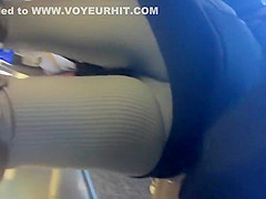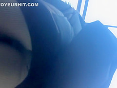 I love it when chicks wear constricted panties that crawl in unfathomable into their booty crack. I always imagine they feel a bit of sensation as they walk and it makes 'em look impossibly arousing. This golden-haired was walking so fast that it probably felt like a sex-toy in her pants.