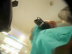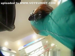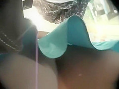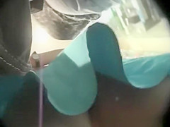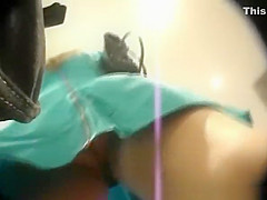 Description: Woman in short green costume has her hawt gazoo and darksome pants upskirted.