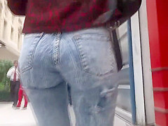Hot beauty got highly large a-hole and voyeur spotted it whilst that guy was in the same store. Take a close look on these tights and u'll notice that they just might break and let that wazoo explode from out of 'em.