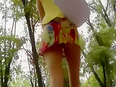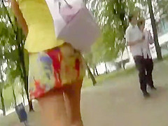 This leggy honey was walking in the park and a stalker couldn't resist the need to take a peek below that seductive colorful mini petticoat that overspread her wiggling butt cheeks. That Guy came closer and noticed this babe is wearing a petite strap that made her wazoo look wonderful along her lengthy legs.