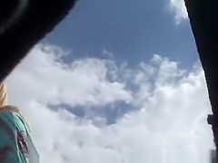 Sexy short hair blond no pants upskirt