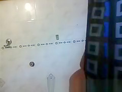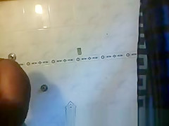 Hidden washroom webcam catches large natural love melons overweight swarthy woman coming out of the shower and drying her body and bra buddies with a green towel and wearing a large dark brassiere to hold these large mambos.