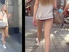 I seriously wonder how this legal age teenager gal's parents let her leave the abode. I mean, com on, that babe looks like this babe literally forgot to put her panties on. These shorts, or pants, or soever they are, are so small that we can watch greater amount than half of her in nature's garb butt when this babe walks.